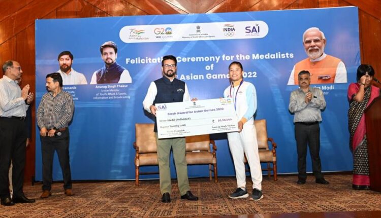 अनुराग सिंह ठाकुर ने निशानेबाजी, नौकायन, वुशु, टेनिस के एशियाई खेलों के पदक विजेताओं को सम्मानित किया और नकद पुरस्कार किए प्रदान
