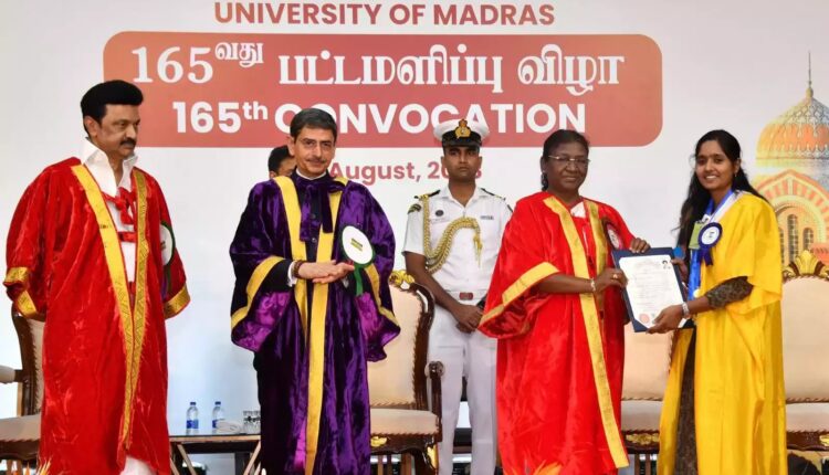`राष्ट्रपति द्रौपदी मुर्मु ने मद्रास विश्वविद्यालय के 165वें दीक्षांत समारोह में लिया भाग