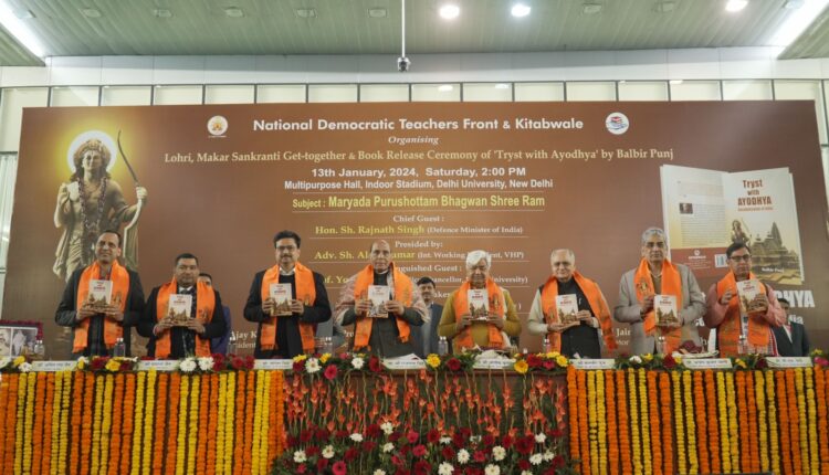 नई दिल्ली, 15 जनवरी। रक्षामंत्री राजनाथ सिंह ने शनिवार को पूर्व संपादक, पूर्व राज्यसभा सांसद एवं लेखक बलबीर पुंज की पुस्तक ट्रायस्ट विथ अयोध्या: डीकोलोनाइजेसन ऑफ़ इंडिया (Tryst with Ayodhya: Decolonisation of India) के विमोचन के अवसर पर कहा कि अयोध्या तोड़ती नहीं जोड़ती है। इस पुस्तक का प्रकाशन किताबवाले द्वारा किया गया।