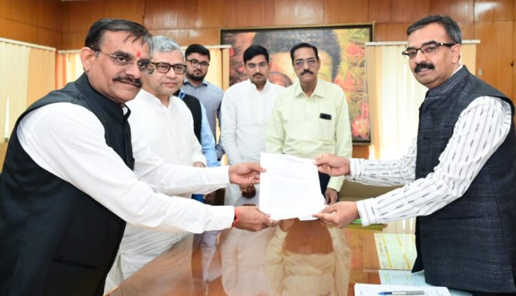 भाजपा के प्रदेश अध्यक्ष विष्णुदत्त शर्मा ने अन्य नेताओं के साथ मिलकर मुख्य निर्वाचन पदाधिकारी कार्यालय पहुंचकर सौंपा ज्ञापन