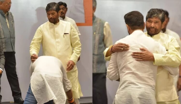 एनडीए की बैठक में चिराग पासवान ने नाराजगी के बीच छुए पशुपति पारस के पैर, चाचा ने भतीजे को लगाया गले