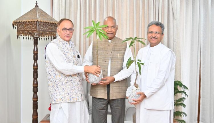 नई दिल्ली, 18जुलाई। भारत के पूर्व 14वें राष्ट्रपति रामनाथ कोविंद के निवास पर आम उत्पादक संघ के पदाधिकारी डॉ० मैराजउद्दीन अहमद, पूर्व सिंचाई मंत्री, उत्तर प्रदेश एवं शोभित विश्वविद्यालय, मेरठ के अध्यक्ष डॉ० शोभित कुमार ने विश्व प्रसिद्ध रटौल आम व रटौल आम का पौधा भेंट किया। पूर्व राष्ट्रपति रामनाथ कोविंद ने रटौल पौधा अपने निवास स्थान पर लगवाया और डॉ० मैराजउद्दीन को सद्भावना देते हुए उनके सामाजिक कार्यों के लिए बधाई दी।