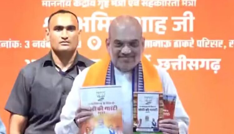 नई दिल्ली, 3नवंबर। अमित शाह ने छत्तीसगढ़ विधानसभा चुनाव के लिए ‘मोदी की गारंटी 2023’ शीर्षक से भाजपा का घोषणापत्र जारी किया. अमित शाह ने कहा कि मैं यहां के लोगों को विश्वास दिलाता हूं कि हम आने वाले पांच वर्षों में छत्तीसगढ़ को पूर्ण विकसित राज्य बनाएंगे. अमित शाह ने कहा कि हम आज छत्तीसगढ़ का घोषणा पत्र पेश कर रहे हैं.हमारा घोषणा पत्र सिर्फ घोषणा पत्र नहीं है, यह हमारे लिए एक संकल्प पत्र है.