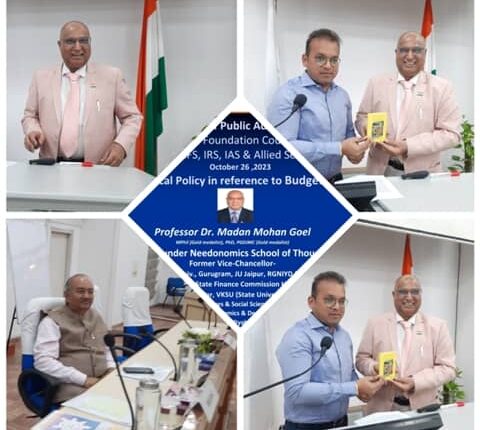 गुरूग्राम, 26 अक्टूबर। मध्यम वर्ग को गरीबों में बदलने से रोकने हेतु मुद्रास्फीति पर उचित माप के साथ नियंत्रण रखने का महत्वपूर्ण मुद्दा है । ये शब्द प्रो. मदन मोहन गोयल, पूर्व कुलपति एवं प्रवर्तक नीडोनॉमिक्स स्कूल ऑफ थॉट जो अर्थशास्त्र विभाग कुरुक्षेत्र विश्वविद्यालय से सेवानिवृत्त हुए ने कहे। वह आज हरियाणा इंस्टीट्यूट ऑफ पब्लिक एडमिनिस्ट्रेशन (एचआईपीए) द्वारा आईपीएस, आईएफएस, आईआरएस, आईएएस और संबद्ध सेवाओं के लिए आयोजित विशेष फाउंडेशन कोर्स- 98 में बोल रहे थे। उन्होंने भारत में मुद्रास्फीति के उचित माप की आवश्यकता , ” केंद्रीय बजट 2023-24 के विशेष संदर्भ में भारतीय राजकोषीय नीति ” और नीडोनॉमिक्स स्कूल ऑफ थॉट पर आधारित वर्तमान भारतीय सोच विषयों पर तीन व्याख्यान दिए।