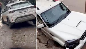 MP: ग्वालियर में फिर धंसने लगी सड़कें… चलती कारें गड्ढों में फंसी, क्रेन से बाहर निकाली गईं