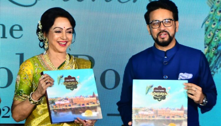 केन्द्रीय मंत्री अनुराग सिंह ठाकुर ने लॉन्च किया “चल मन वृंदावन” कॉफी टेबल बुक, सांसद हेमा मालिनी भी रही मौजूद