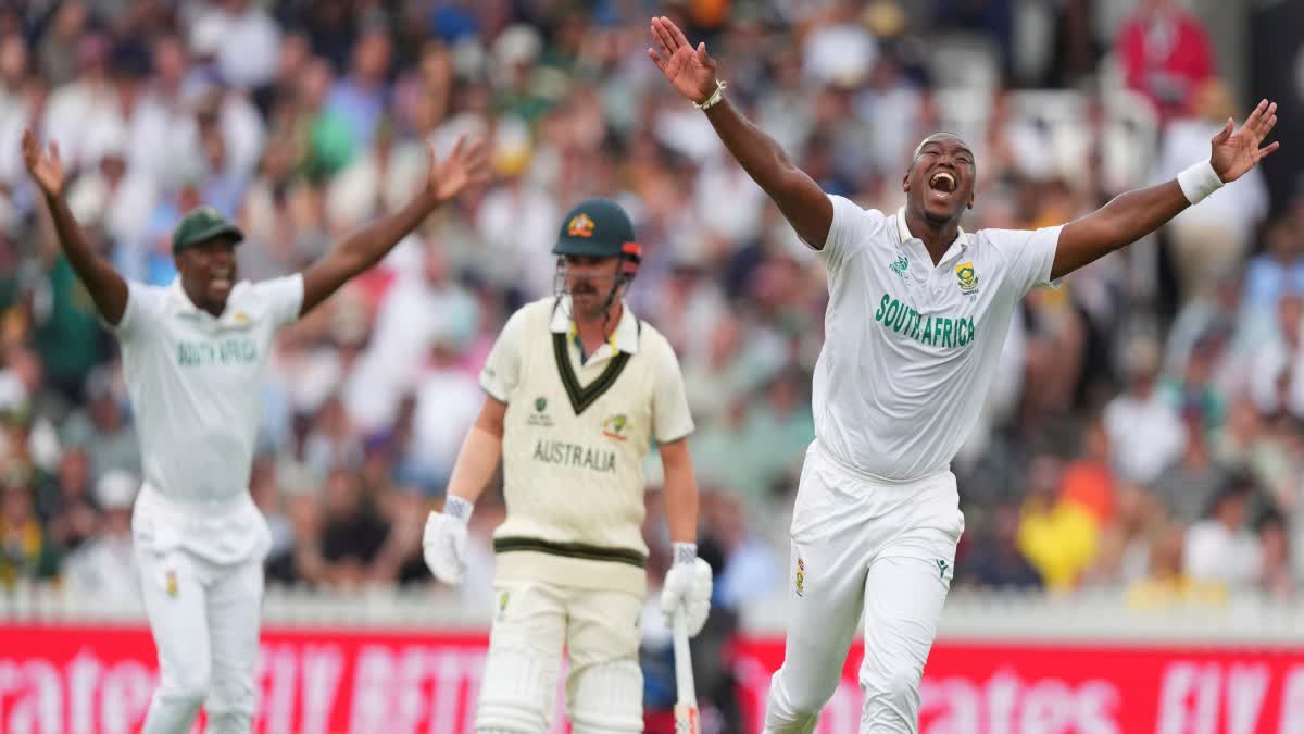 दूसरे ही दिन ऑस्ट्रेलिया ने अपनी दूसरी पारी शुरू कर दी। टीम ने 73 रन पर 7 विकेट गंवा दिए। यहां से एलेक्स कैरी और मिचेल स्टार्क ने पार्टनरशिप की और टीम को 144 रन तक पहुंचाया। टीम के 2 विकेट और बाकी हैं। लॉर्ड्स स्टेडियम में बुधवार को साउथ अफ्रीका ने बॉलिंग चुनी। ऑस्ट्रेलिया ने 212 रन पर 10 विकेट गंवा दिए। ब्यू वेबस्टर ने 72 और स्टीव स्मिथ ने 66 रन बनाए। कगिसो रबाडा को 5 विकेट मिले। साउथ अफ्रीका ने भी अपनी पारी शुरू कर दी, लेकिन 43 रन पर ही 4 विकेट गंवा दिए।